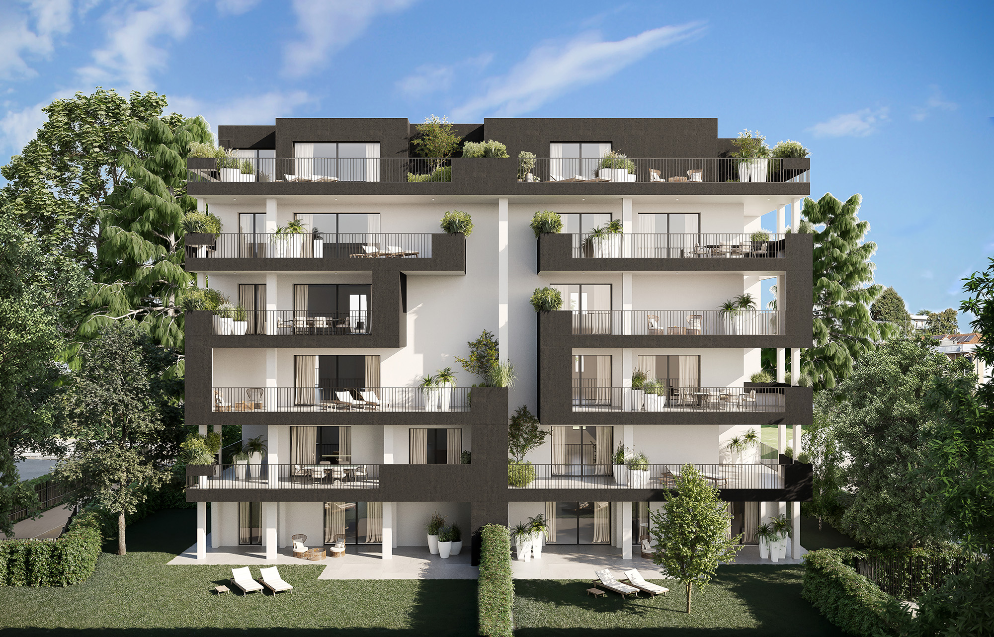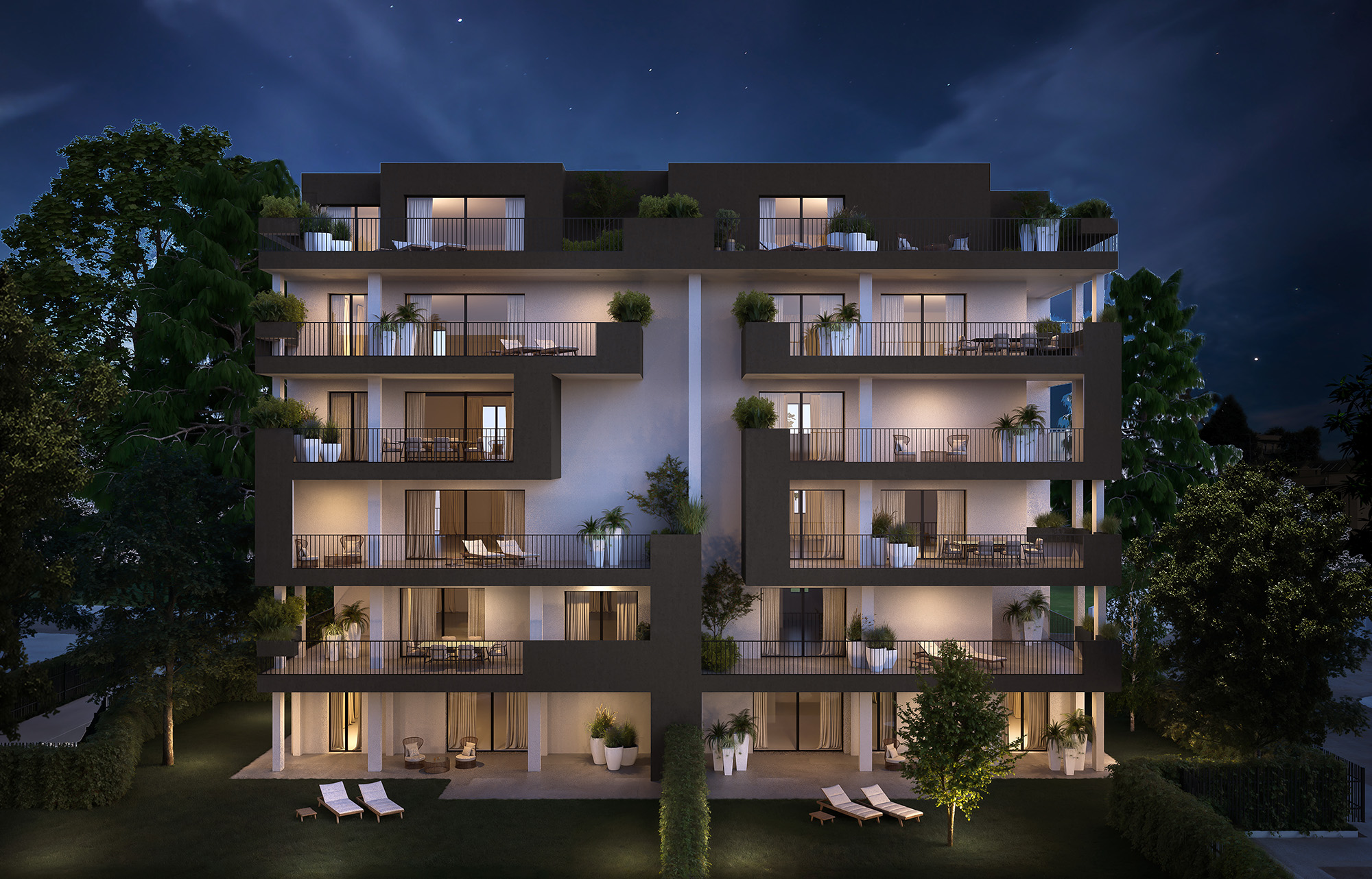 Le unità abitative si articolano su 6 piani fuori terra in diverse tipologie, sia in termini di spazi interni che esterni, passando dagli ampi terrazzi, ai piacevoli giardini privati.